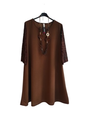 Ένα υπέροχο φόρεμα σε ποιοτικό, ελαστικό κρεπ με δαντέλα στα μανίκια.