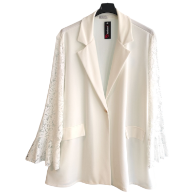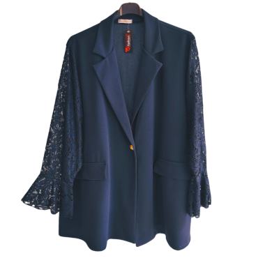 Από τα πιο εντυπωσιακά και κομψά σακάκια που μπορείτε να επιλέξετε. Ιδιαίτερο, σικατο και ρομαντικό. Με υπέροχη δαντέλα στο μανίκι και ιδιαίτερο τελείωμα. Σε πολύ άνετο μέγεθος και εξαιρετική τιμή. Από κρεπ πουντο ελαστικό ύφασμα.