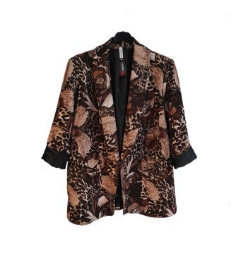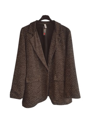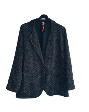 Πρόκειται για ένα σακάκι πολύ ιδιαίτερο, στολισμένο με στρασάκια, υπέροχο πέτο, με φόδρα. Είναι σε σταθερό ύφασμα σαν μαλακό πλεκτό μηχανής, τύπου ψαροκόκαλο. Είναι μονόχρωμο και είναι το ιδανικό ρούχο για μια εντυπωσιακή εμφάνιση. Καλύπτει διαστάσεις στήθους από 120-130 εκατοστά, περιφέρεια γλουτών από 125-140 εκατοστά, μπράτσο εως 44 εκατοστά, ενώ έχει μήκος 80 εκατοστά.