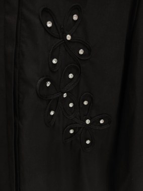 Με υπέροχο κεντημένο λουλούδι σε μαύρο χρώμα που δημιουργεί καταπληκτική αντίθεση και μέσα στο λουλούδι υπάρχουν μικρά στρας που προσδίδουν λάμψη και πολυτέλεια. Από εξαιρετικής ποιότητας βαμβακερό ύφασμα τύπου ποπλινα, που βοηθάει το δέρμα να αναπνέει, μαλακό στην υφή που διαρκεί στο χρόνο. Έχει πολύ άνετες διαστάσεις.