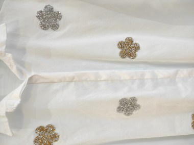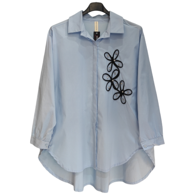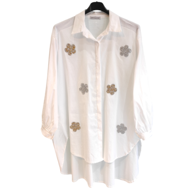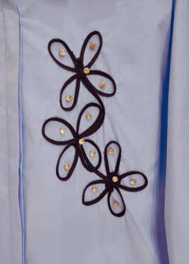 Με υπέροχο κεντημένο λουλούδι σε μαύρο χρώμα που δημιουργεί καταπληκτική αντίθεση και μέσα στο λουλούδι υπάρχουν μικρά στρας που προσδίδουν λάμψη και πολυτέλεια. Από εξαιρετικής ποιότητας βαμβακερό ύφασμα τύπου ποπλινα, που βοηθάει το δέρμα να αναπνέει, μαλακό στην υφή που διαρκεί στο χρόνο. Έχει πολύ άνετες διαστάσεις.