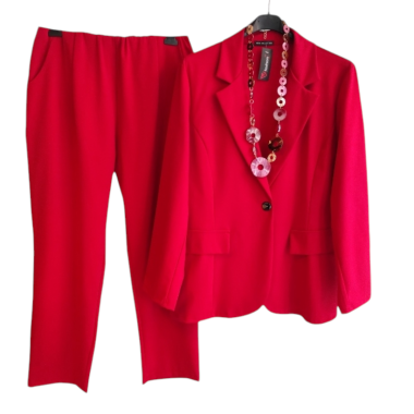 Το σετ αποτελείται από ένα σακάκι και ένα παντελόνι. Ένα κοστούμι από εξαιρετικής ποιότητας βαμβακερό ύφασμα ελαστικό που σμιλεύει τη σιλουέτα απίστευτα. Έχει τέτοια εφαρμογή που αγκαλιάζει το κορμί και αναδεικνύει τη θηλυκότητα.